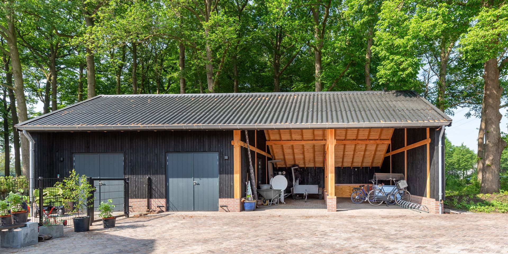 Voor dit project heeft Teunissen Houtbouw een robuuste kapschuur op maat gebouwd. Het traject liep van voorbereiding en fundering tot de complete houten opbouw en dakconstructie.