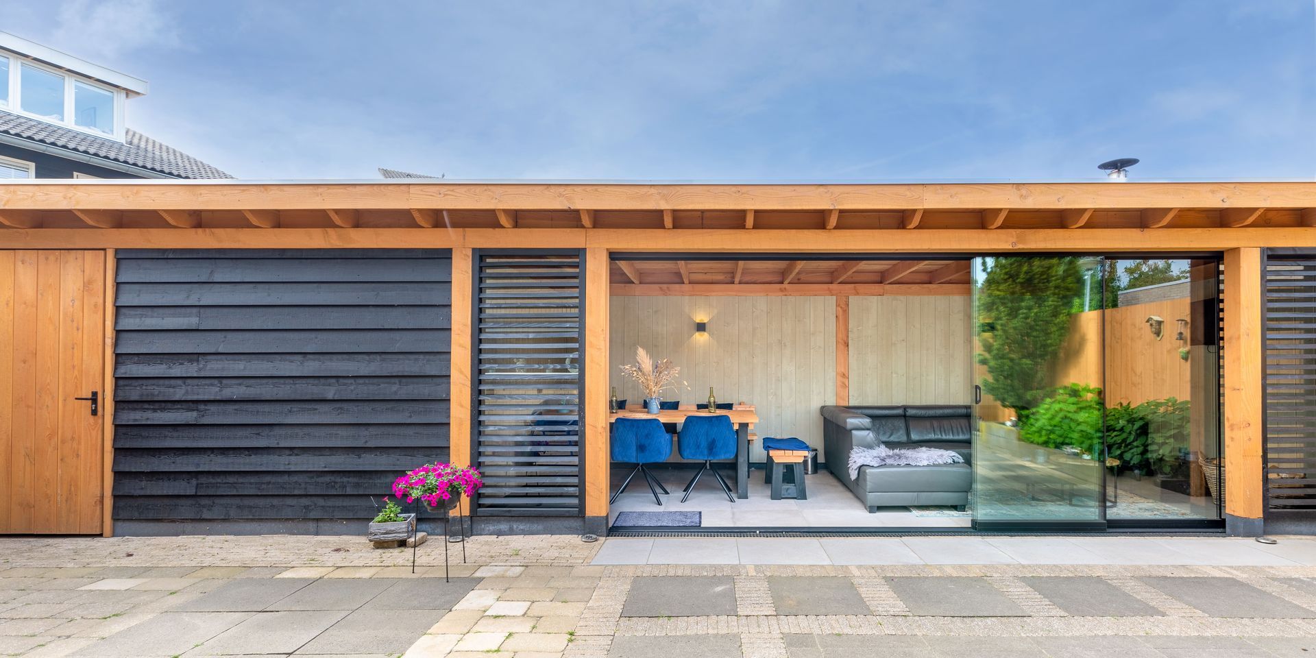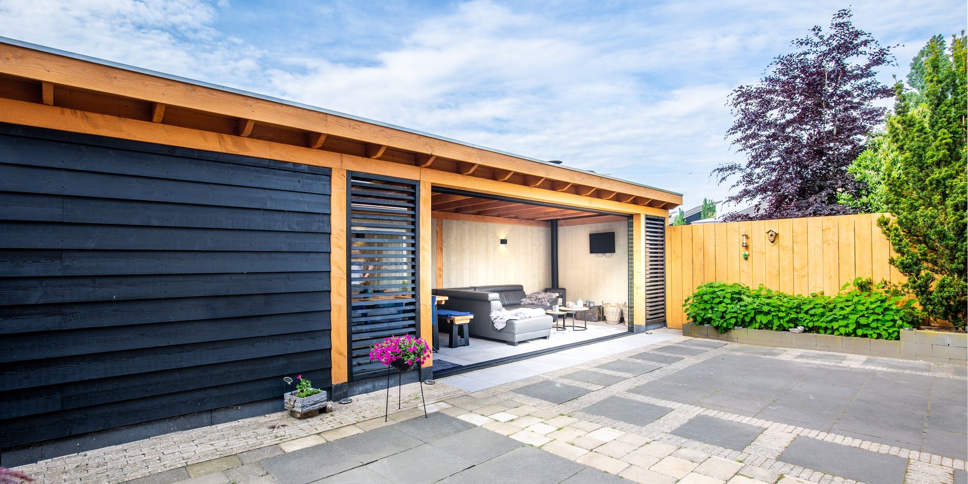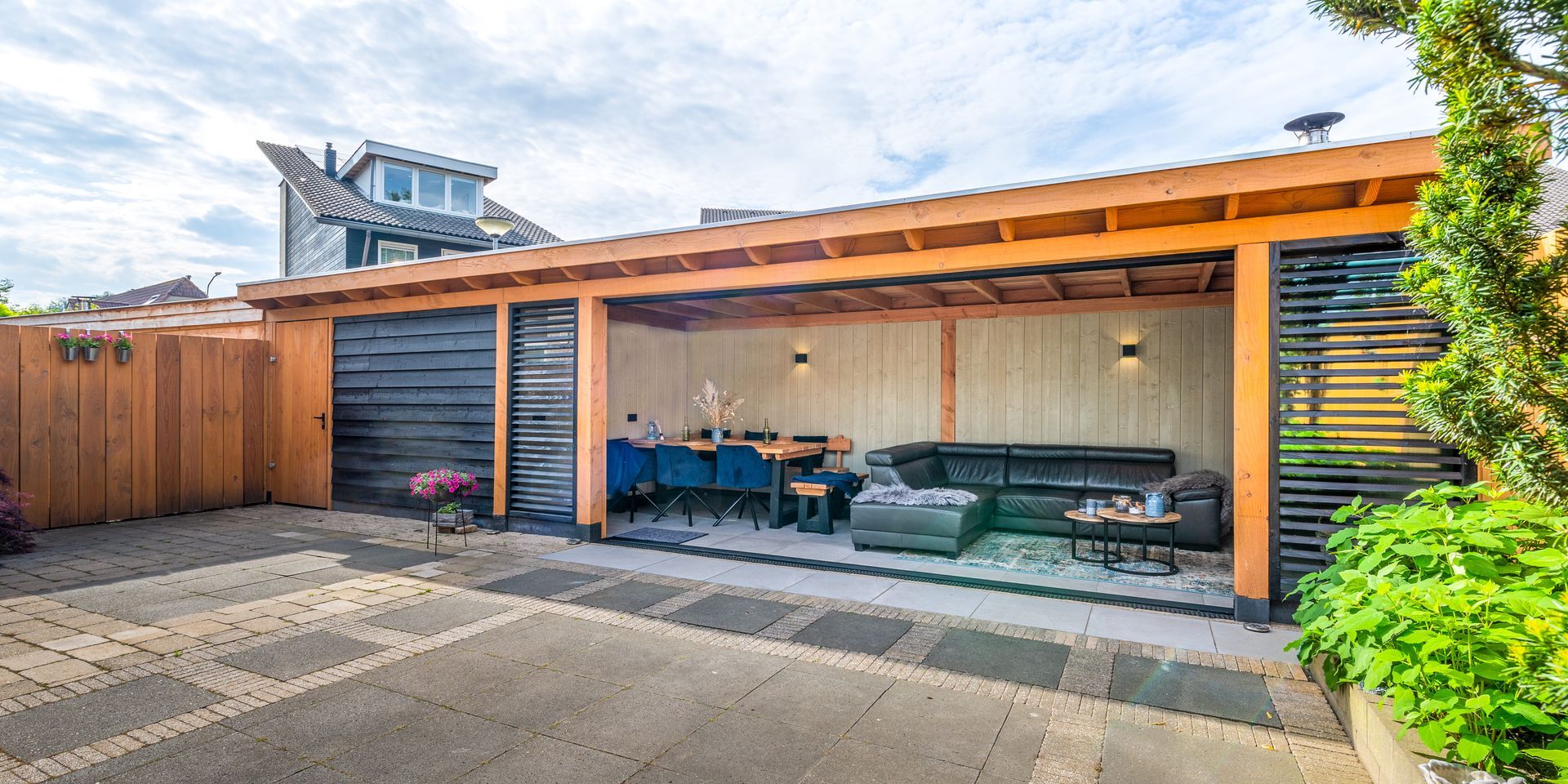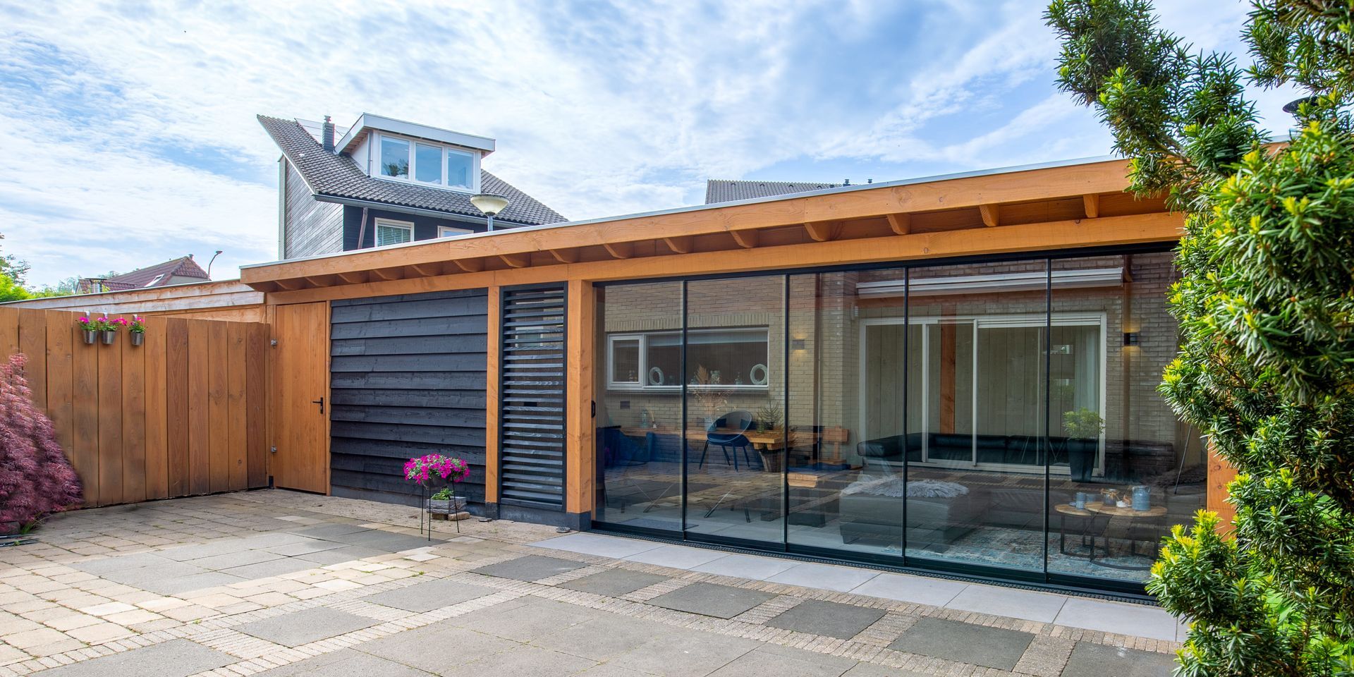 In Leusden is een veranda met glaswanden gerealiseerd voor extra comfort en lichtinval. Teunissen Houtbouw verzorgde het complete proces, inclusief plaatsing van de glaswanden en afwerking.